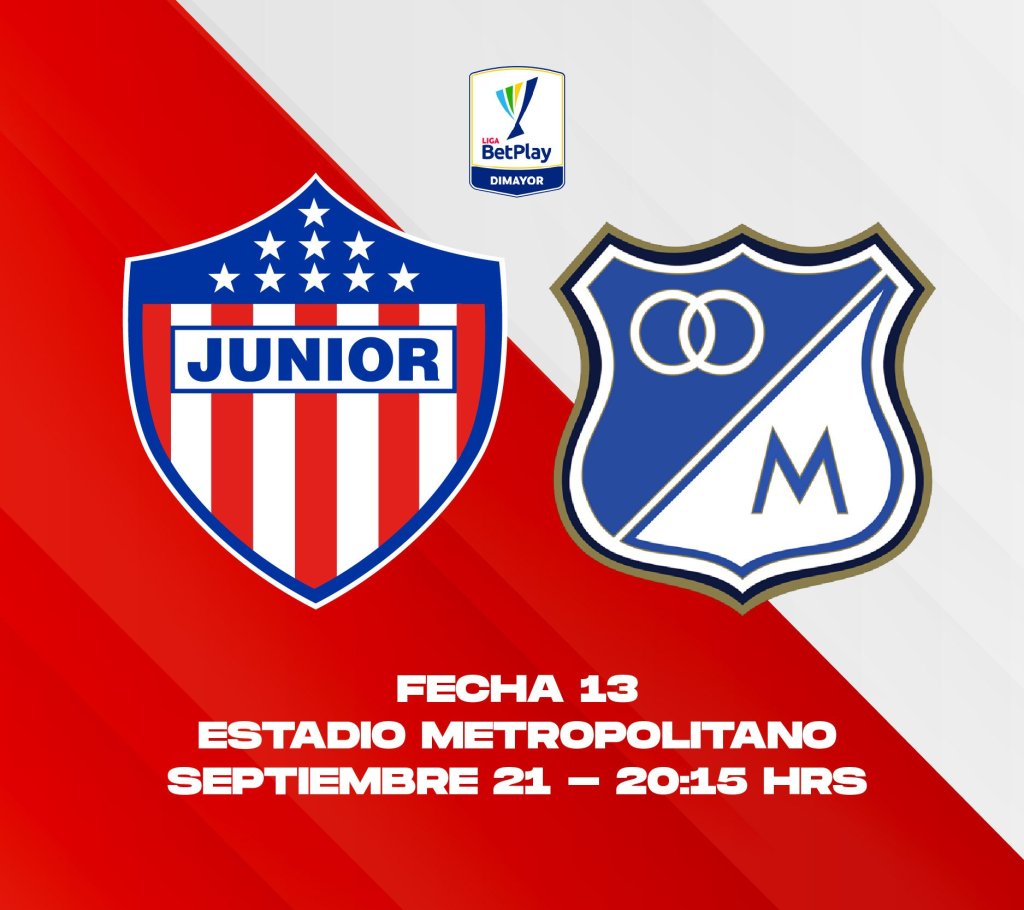 Junior de Barranquilla y Millonarios FC jugarán el partidazo de la decimatercera fecha de la Liga Betplay 2022 – II del fútbol profesional colombiano que se jugará, este miércoles (hoy) a partir de las 8:10 PM, en el Estadio Roberto Meléndez Lara de la capital atlanticense.